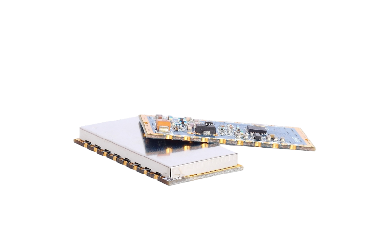 本模組輸出功率達到3W,體積小巧,考慮到散熱,建議采用間歇發(fā)送模式(一般應(yīng)用也都是這種模式),如發(fā)送一次或幾次數(shù)據(jù)轉(zhuǎn)為接收模式。實測200mS內(nèi)發(fā)送50mS ,長時間工作,模組溫升正常。如客戶需較長時間連續(xù)發(fā)送無間歇,應(yīng)考慮外部散熱措施,建議客戶主板在模組底部開窗散熱位置相應(yīng)開方形槽,增加散熱片,提高散熱性能。